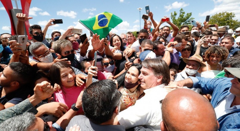 Com aglomeração e sem máscara, Bolsonaro inaugura trecho de rodovia na BA