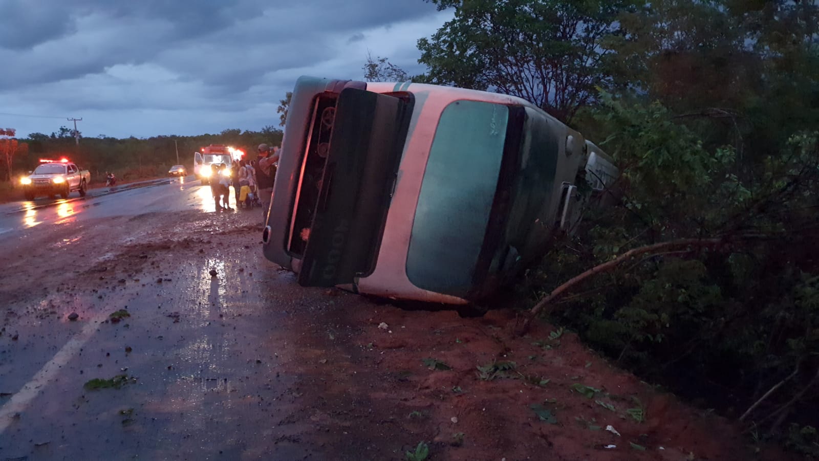 De acordo com a PRF, chovia forte no momento em que o condutor tombou o veículo e a pista se encontrava molhada. A principal causa do acidente ainda não foi averiguada.