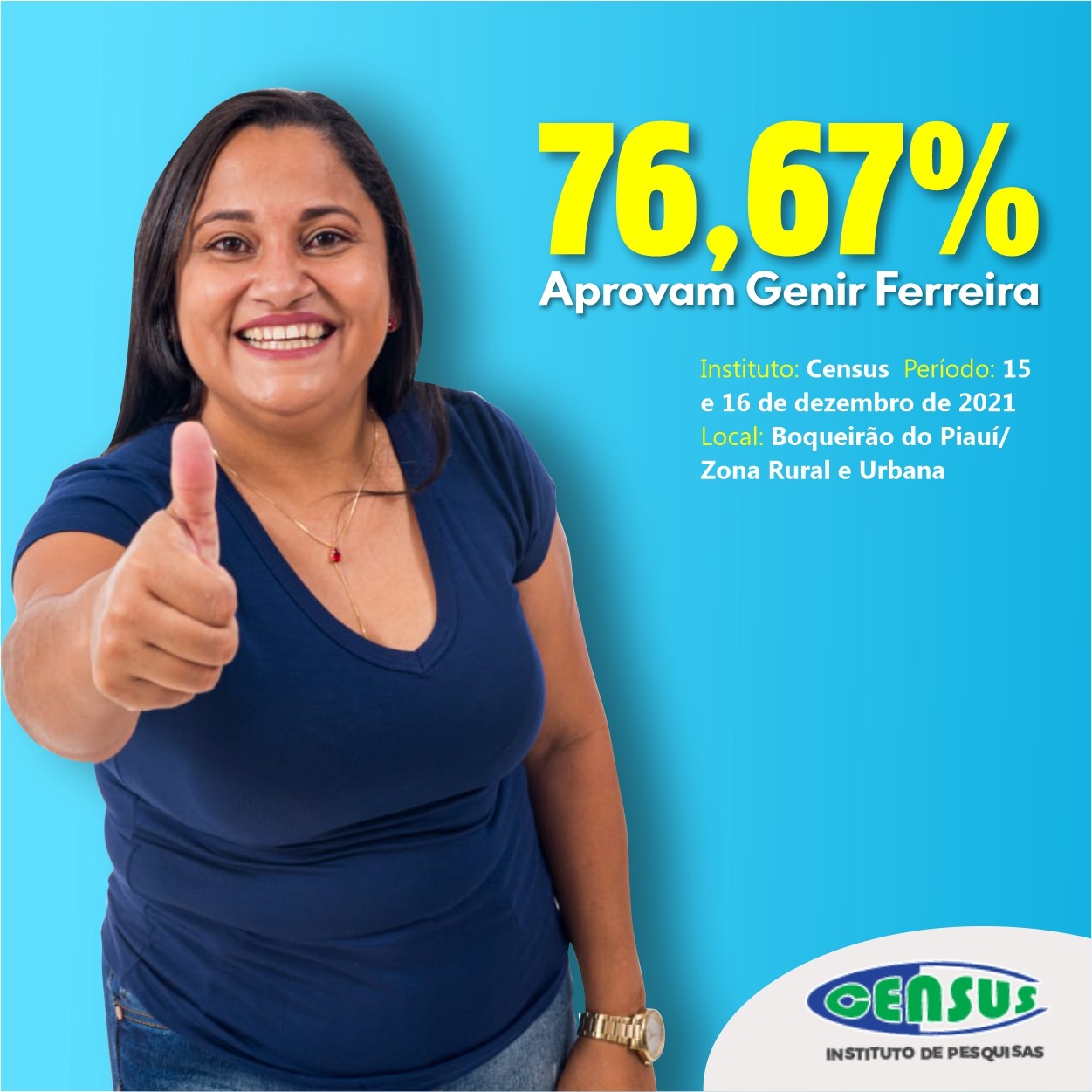INSTITUTO CENSUS | 76,67% aprovam os primeiros 12 meses de gestão da Prefeita Genir Ferreira em Boqueirão do Piauí