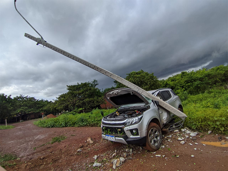 “Devido à chuva, parece que o carro aquaplanou, então ele derrapou na pista e bateu no poste. Ele não ficou ferido e só teve danos materiais”, informou o soldado Marcionilo, da PM em Cocal.