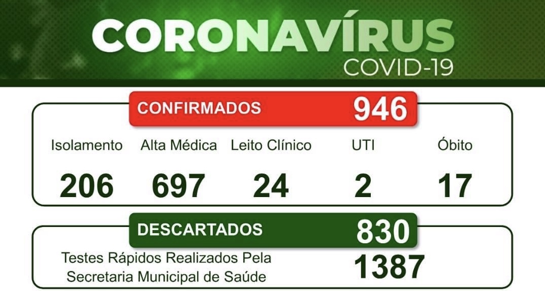 Por outro lado, os dados mostram que no mesmo período 40 pessoas foram consideradas recuperadas da doença. O acumulado de quem superou a doença é de 697 pessoas. O município tem ainda 26 pessoas internadas, sendo 24 em leitos clínicos e duas em leitos de UTI.