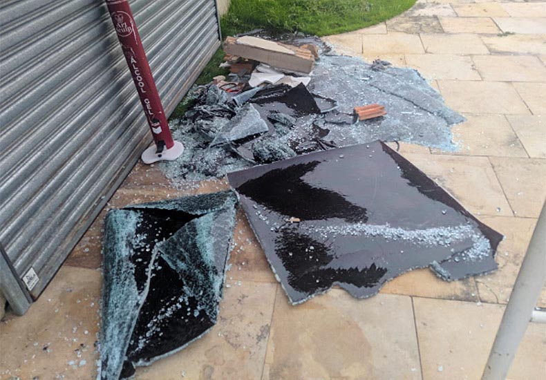 Com o acidente o veículo atingiu a loja, quebrou o vidro da fachada e ainda atingiu a proprietária que estava sentada na recepção, ficando imprensada entre a bancada da recepção e a parede.