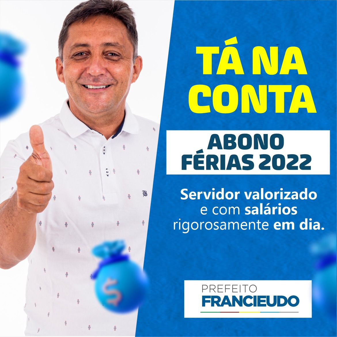 Prefeito Francieudo paga abono férias 2022 para servidores da educação. Foto: reprodução