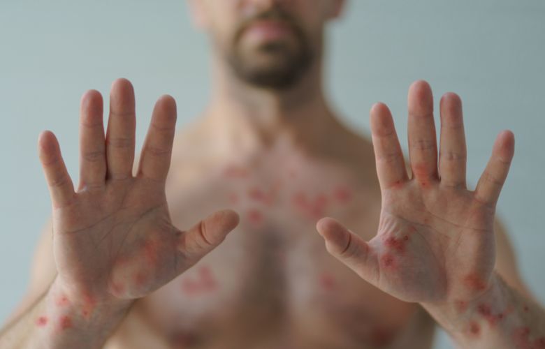 A doença é transmissível de paciente para paciente, principalmente na fase em que as feridas características da varíola murcham. As erupções — que podem ter aparência levemente diferente em tons de pele distintos — podem contaminar as roupas e os lençóis.