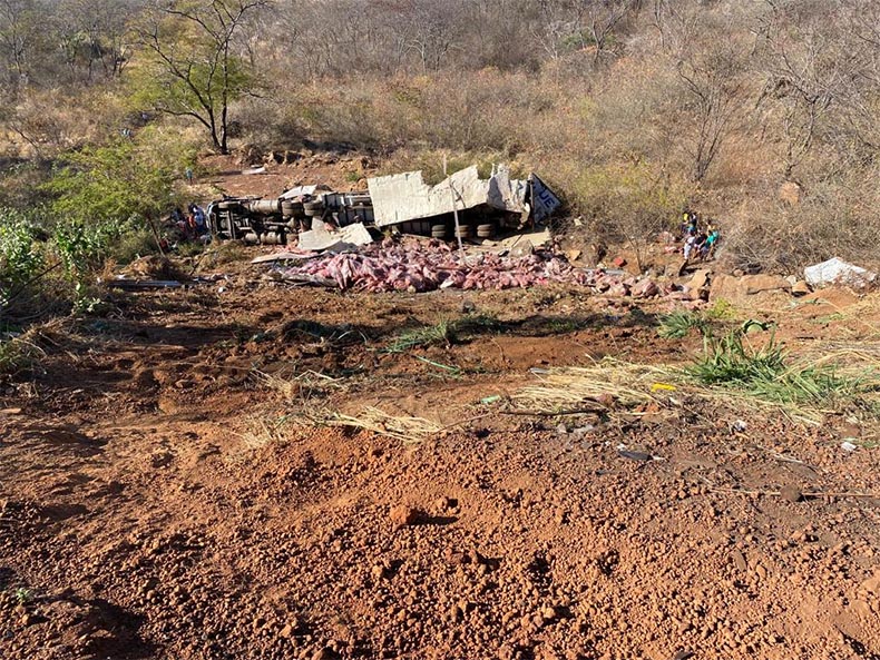 Caminhão carregado de carne cai em ribanceira e carga é saqueada no Piauí