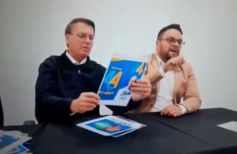 Na gravação, Bolsonaro mostrou impressões com as fotos e os números de urna de Sílvio Mendes e Joel Rodrigues.