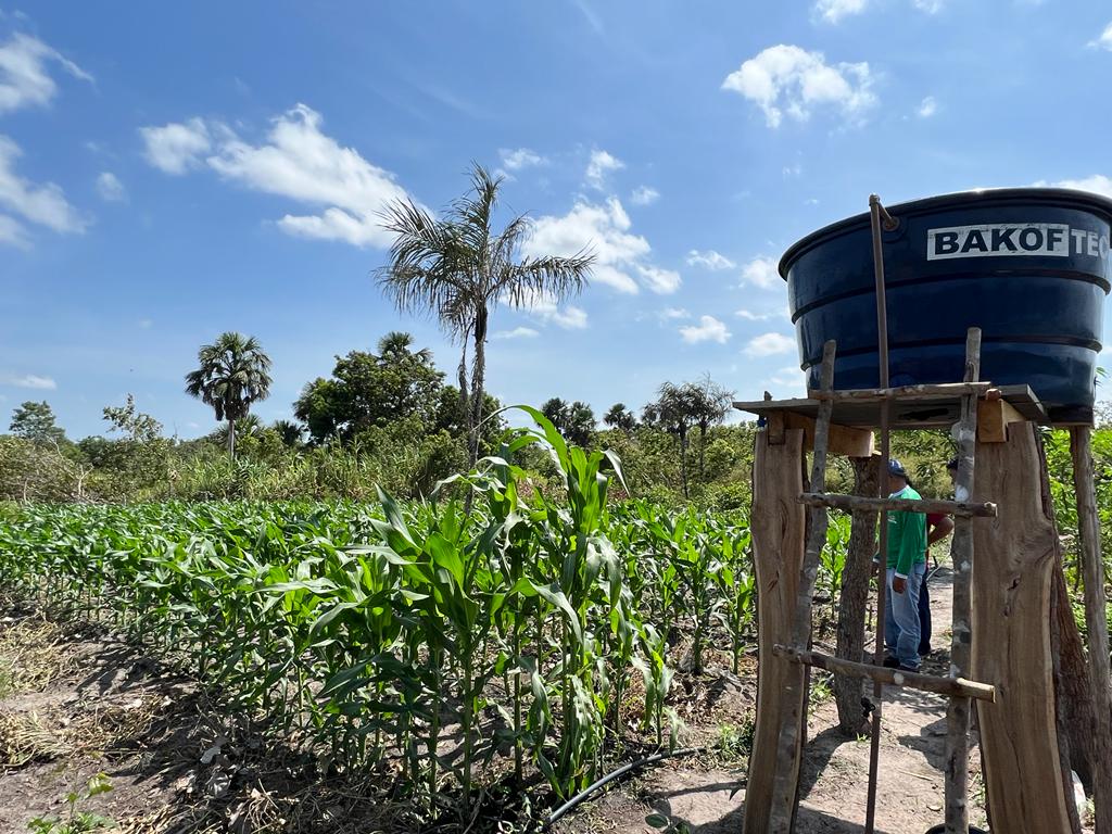 Os kits beneficiaram 15 agricultores e possuem capacidade para irrigar quintais produtivos. São compostos por caixa d’água, tubos de plástico, peça de gotejamento, entre outros.