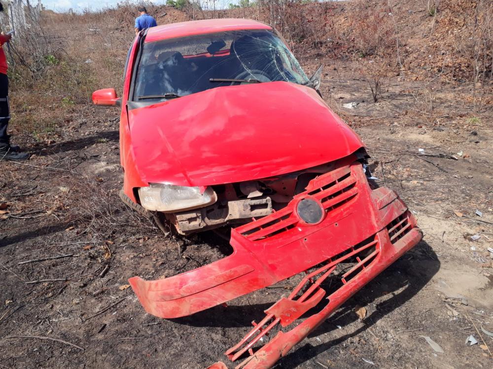 Um carro modelo Volkswagen Gol capotou deixando os dois ocupantes feridos, mas sem gravidade.