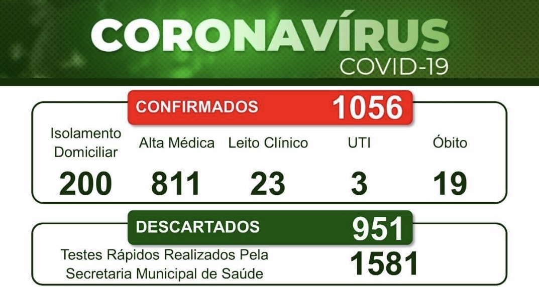 Agora, são 19 vítimas fatais da Covid-19 no município desde o início da pandemia