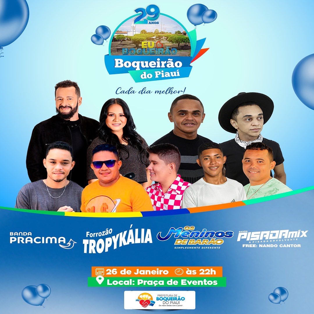 A Prefeitura Municipal de Boqueirão do Piauí divulgou na manhã desta quarta-feira (18), a programação oficial das festividades de comemoração do 29º Aniversário de Emancipação Política do município.