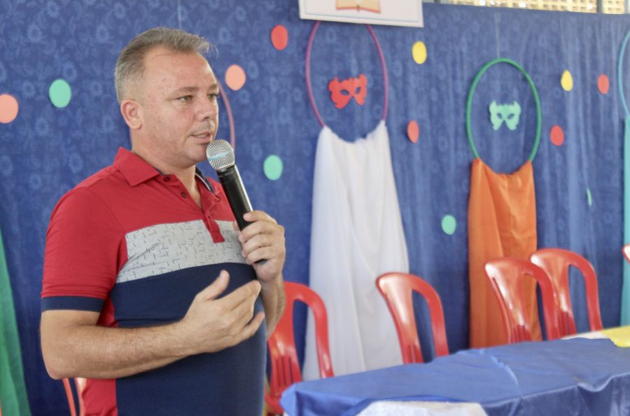 O Secretário de Educação professor Gilberto Gomes juntamente com a prefeita Genir Ferreira, abriram o evento dando as boas-vindas e expressando sua alegria em darmos início a mais um ano letivo.