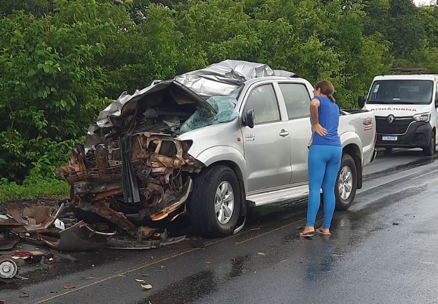 Um grave acidente envolvendo um veículo modelo Hilux e um caminhão matou a esposa de um empresário de Castelo do Piauí, na tarde deste domingo (12), em um trecho da PI-115, região da localidade Monte Azul, nas proximidades da cidade de Juazeiro do Piauí, Norte do Estado.