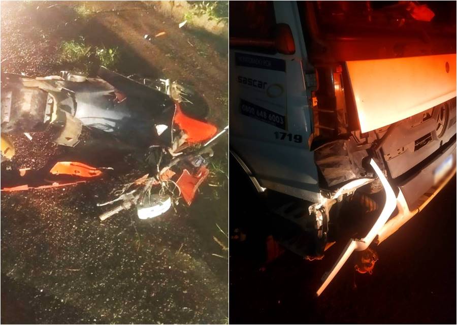 No local, o motorista do veículo de carga relatou que a motocicleta estava parada no meio da rodovia.