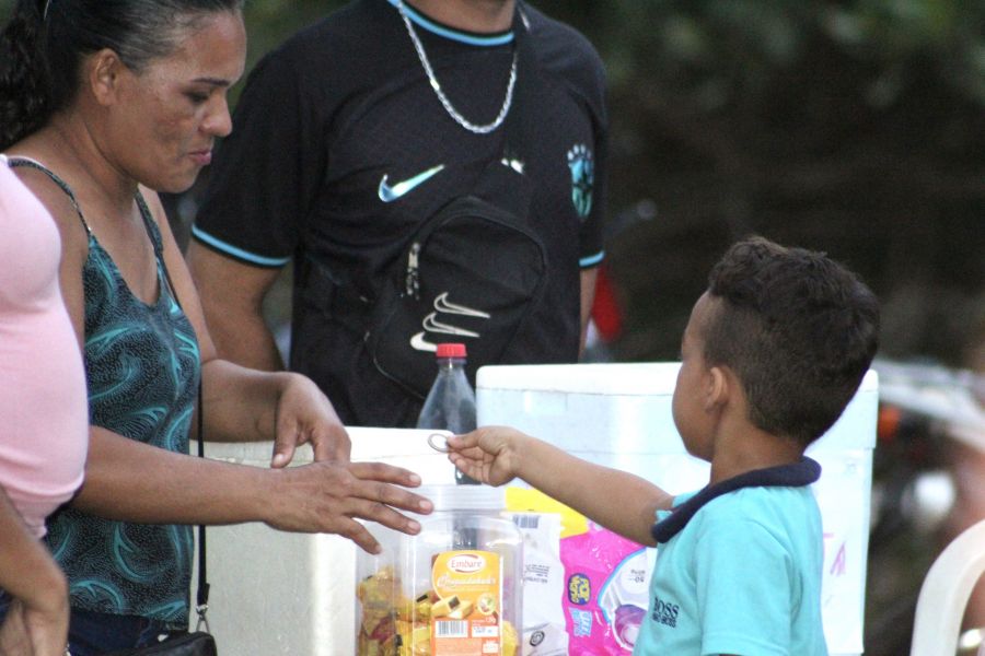 Além de diversão para a torcida, muitas pessoas aproveitam para garantir uma renda extra durante os jogos, como é o caso da senhora Maria das Dores, moradora da comunidade Pau Pombos, onde aconteceu no último domingo (26), um jogo entre o time local e a equipe do Real Sociedade.