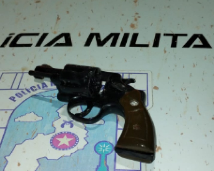 Após a prisão o homem foi encaminhado para a Delegacia e a polícia realizou a diligência na mata onde encontraram o revólver calibre 38.