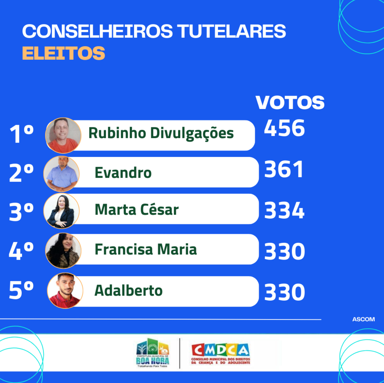 Veja os conselheiros eleitos em Boa Hora. Mais votado obteve 456 votos