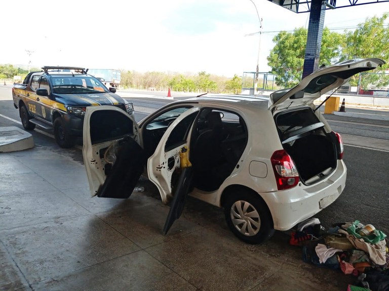 Diante das respostas contraditórias e do comportamento suspeito, a equipe da PRF decidiu realizar uma inspeção no veículo, modelo Toyota/Etios Hb X Vsc. Durante a ação, a equipe localizou 20 tabletes contendo uma substância com características semelhantes ao skunk, uma variante potente da maconha. O peso total dos ilícitos corresponde a 21,85 kg.