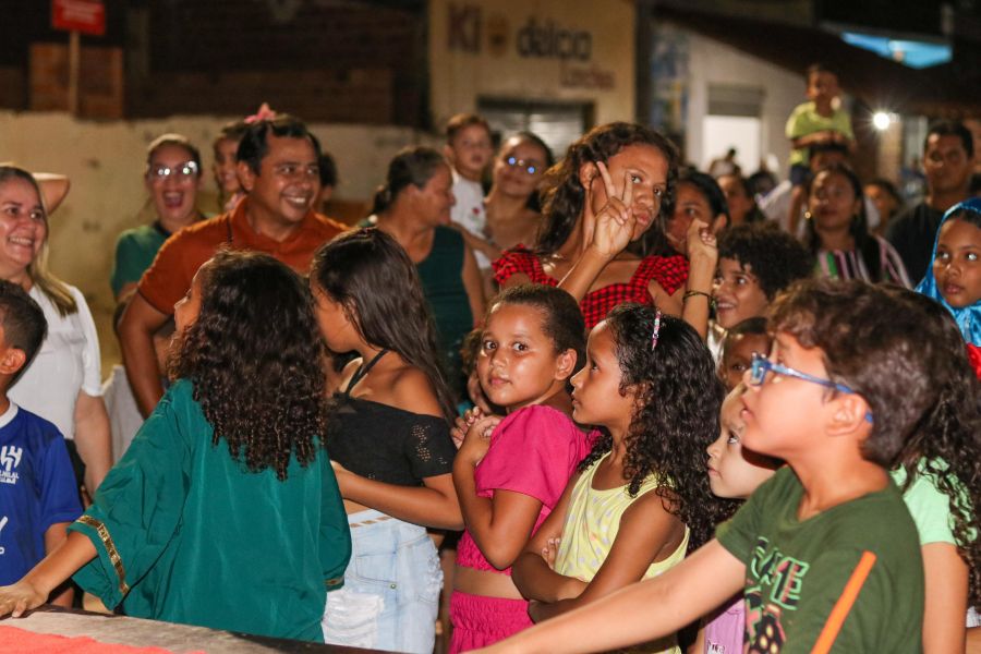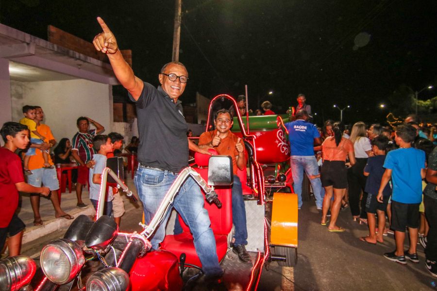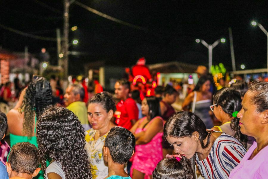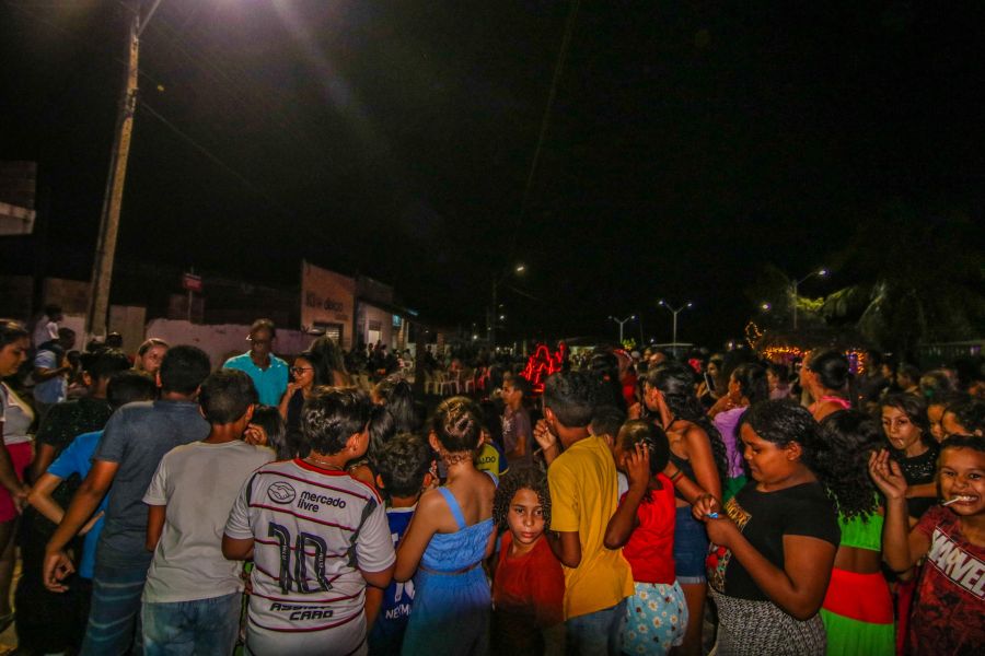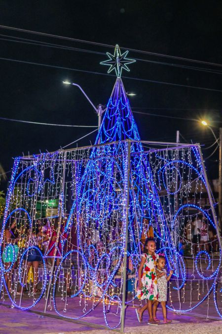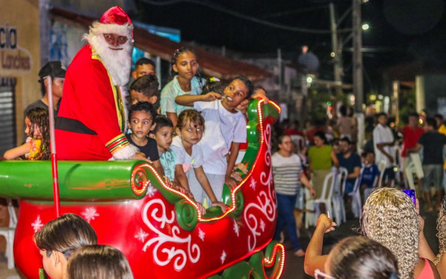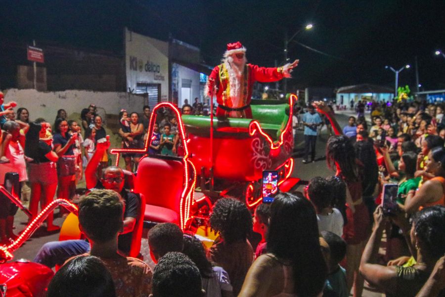 O evento iniciou com o ascender das luzes pelo vice-prefeito Chiquinho Senador juntamente com uma multidão de crianças que foram ver a chegada do Papai Noel.