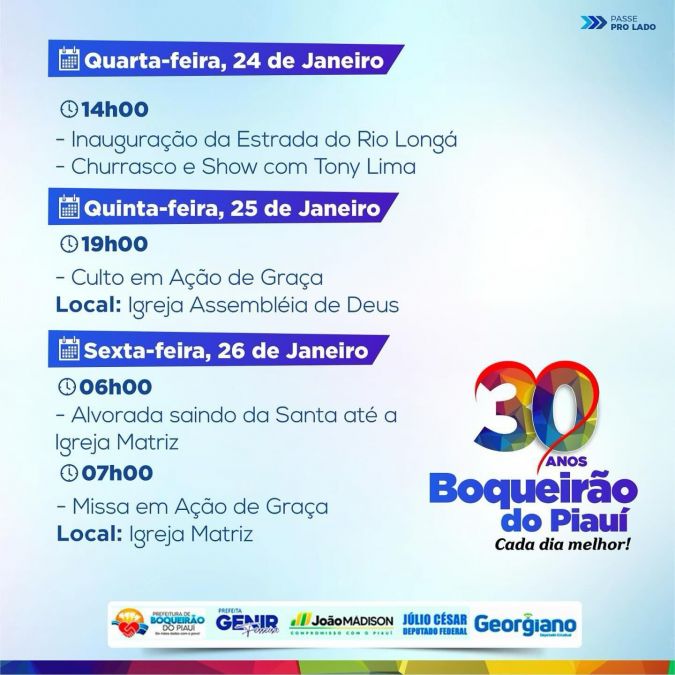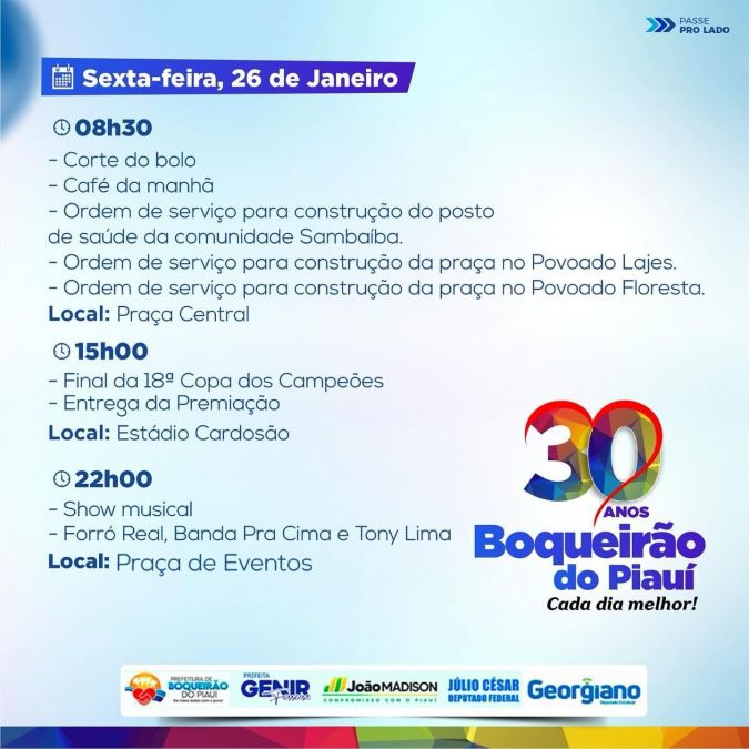 Programação do aniversário de Boqueirão do Piauí inicia nesta quarta (24)