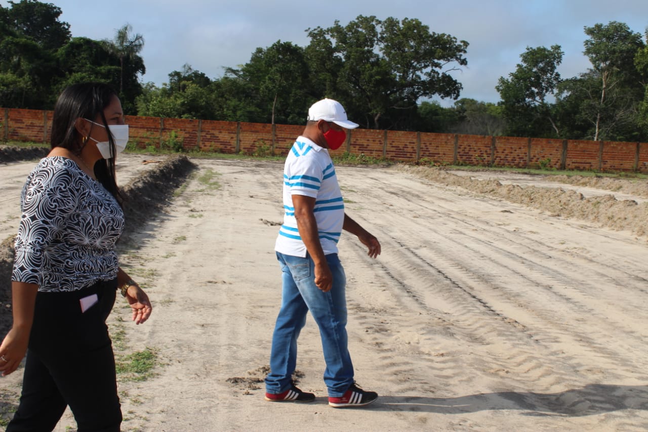 Prefeita Genir visita início da retomada das obras do estádio Cardozão em Boqueirão do Piauí