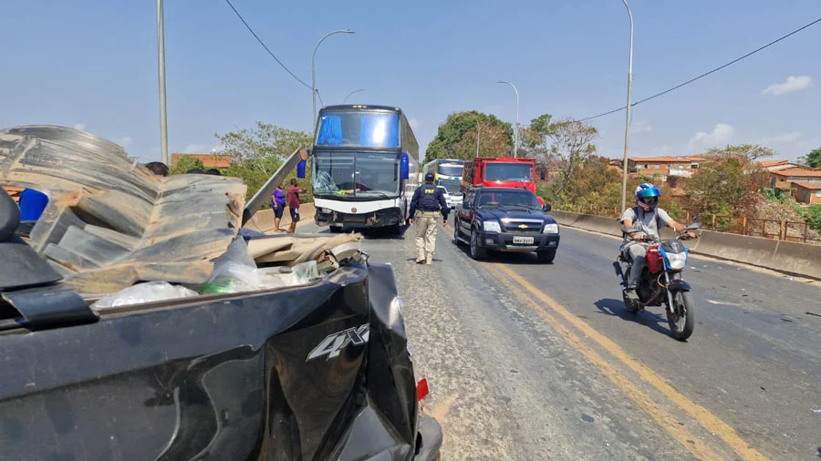 O congestionamento já se estende pela BR-343 até a altura da entrada do bairro Dirceu Arcoverde. A PRF está orientando o trânsito e aguardando o reboque para retirar o ônibus, a caminhonete e um carro de passeio que não têm condições de trafegar.