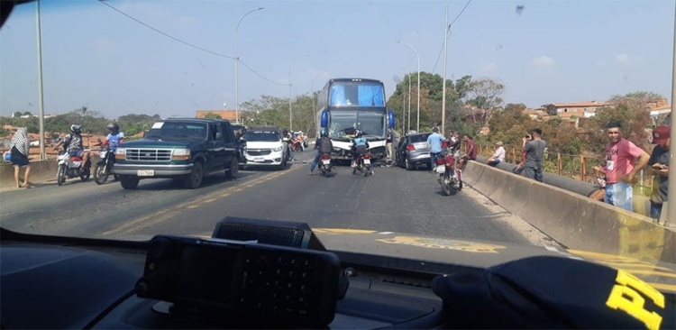Uma colisão envolvendo um ônibus e mais quatro veículos por volta das 8h40, desta terça-feira (27) sobre a ponte Presidente Médici, conhecida como ponte do Tancredo Neves, deixou o trânsito congestionado no local e a ponte parcialmente interditada.