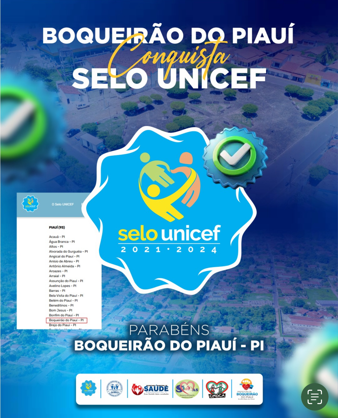 O município de Boqueirão do Piauí conquistou pela primeira vez na história o Selo internacional da instituição UNICEF por avanços e melhorias em vários indicadores sociais nos últimos 04 anos