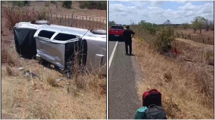Uma caminhonete Hilux que transportava uma carretinha reboque com uma betoneira capotou na manhã desta quarta-feira (13), na rodovia PI-113, entre Barras e Cabeceiras, no Norte do Piauí.