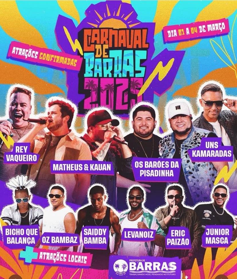 A Prefeitura do município de Barras divulgou todas as atrações que se apresentaram durante a programação do Carnaval 2025.