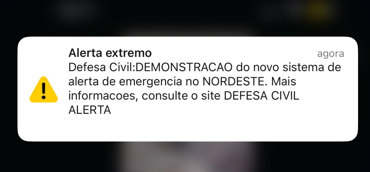 Durante a simulação, celulares com cobertura 4G ou 5G nas áreas selecionadas receberam uma mensagem acompanhada de um som característico. O conteúdo do aviso deixou claro que se trata apenas de um teste, sem qualquer risco imediato.