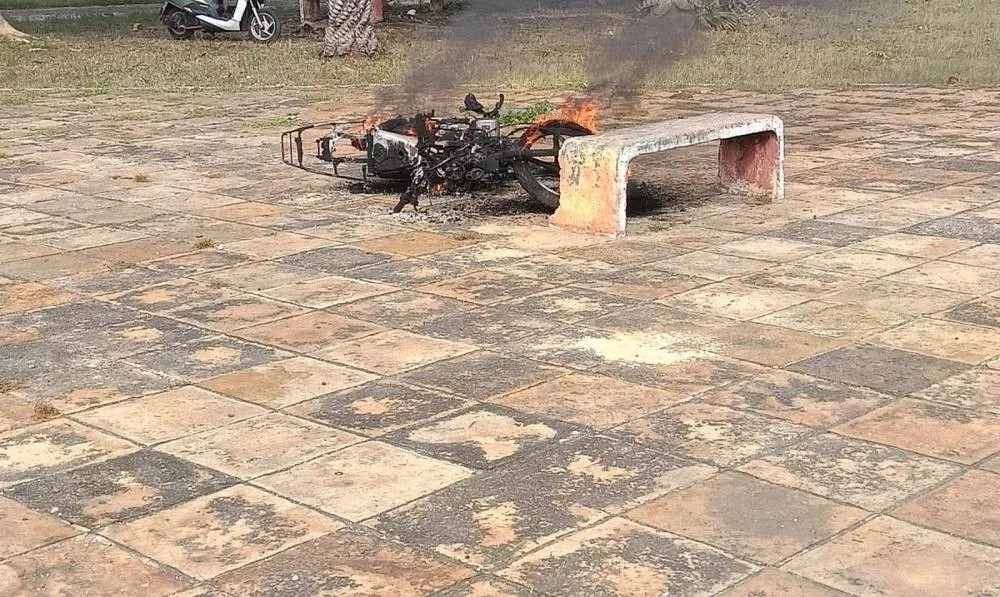 Homem ateia fogo na própria moto em praça de Barras Piauí