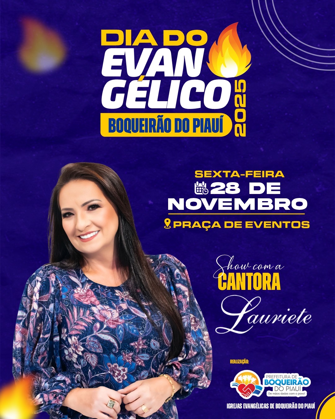 Na ocasião, foi confirmado que a grande atração do evento será a renomada cantora gospel Lauriete, uma das maiores referências da música pentecostal no Brasil. Com mais de 30 álbuns gravados e mais de 6 milhões de cópias vendidas, Lauriete construiu uma carreira de destaque, com inúmeros sucessos, como Palavras, Deus dos Deuses, Dias de Elias, Outro Igual não Há e Sete Trombetas.