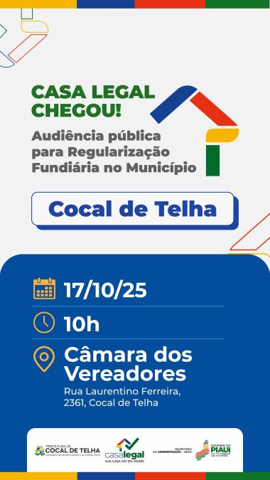 Moradores de Cocal de Telha terão a oportunidade de regularizar a situação de seus imóveis por meio do programa Casa Legal, desenvolvido pela Secretaria de Administração (Sead). A audiência pública que dará início ao processo acontece nesta sexta-feira (17), às 10h, na Câmara Municipal de Vereadores.