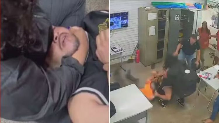 Câmeras de segurança da escola registraram o momento em que o homem entra na sala de coordenação e dá uma sequência de socos na cabeça do educador, que tenta se proteger enquanto é contido por outros funcionários.
