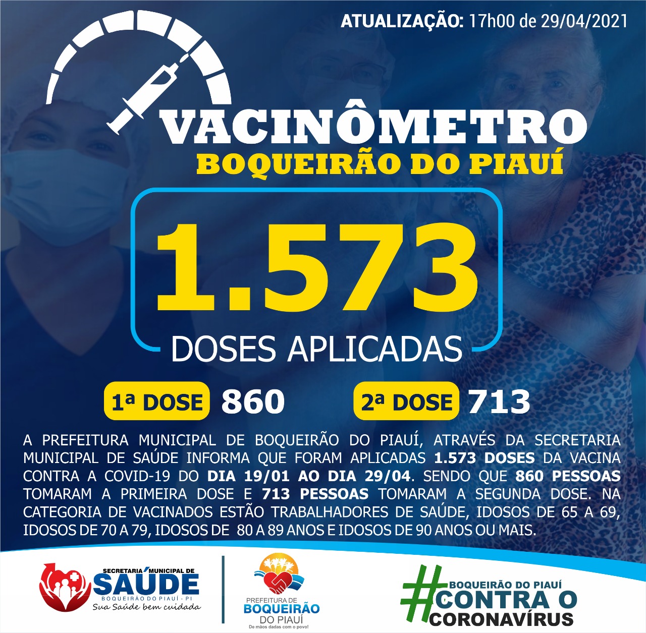 A Secretaria Municipal de Saúde de Boqueirão do Piauí divulgou os dados da vacinação contra a covid-19 no município. Até o momento a Secretária de Saúde já aplicou 1.573 doses da vacina. Sendo 860 da 1ª doses e 713 da 2ª dose. Os números representam mais de 24% da população vacinada.
