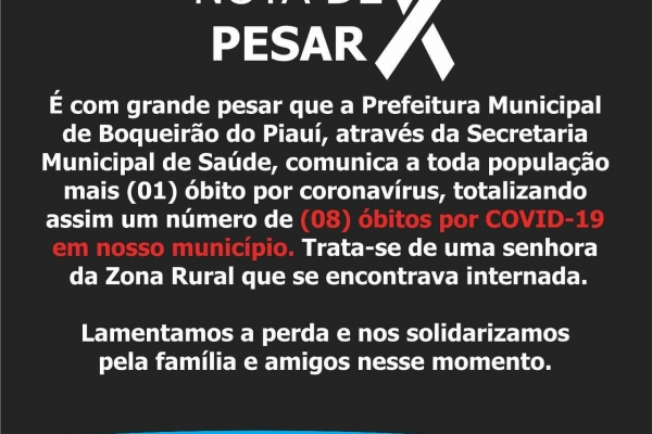Boqueirão do Piauí registrou mais uma morte em decorrência da covid-19
