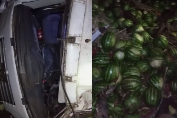 Caminhão carregado de melancia tomba em cidade da região norte do Piauí