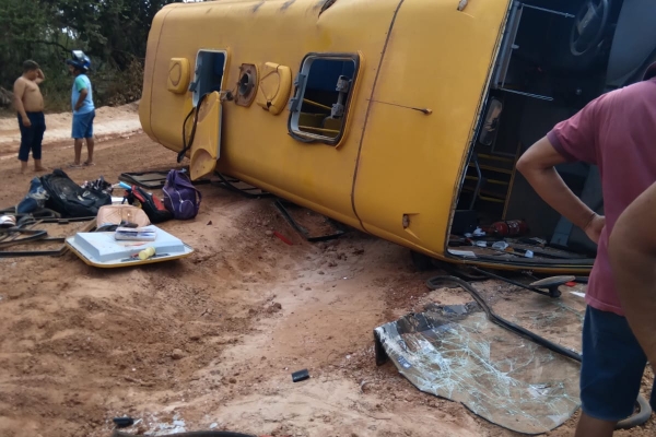 Ônibus escolar tomba na zona rural de José de Freitas e deixa alunos feridos