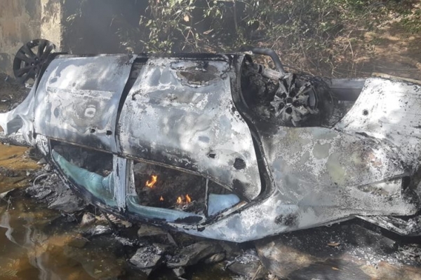 Carro pega fogo após casal sofrer acidente no Norte do Piauí