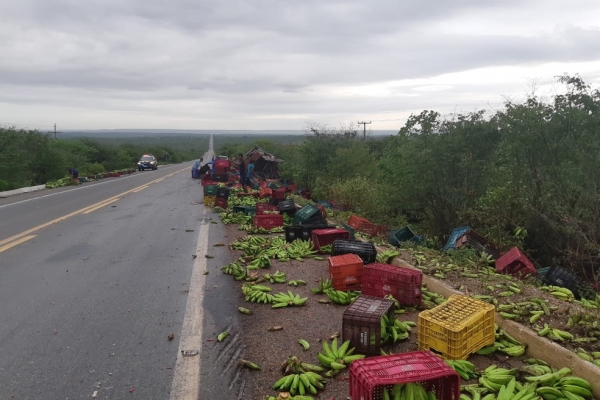 Caminhão carregado de banana tomba e motorista fica ferido no Piauí