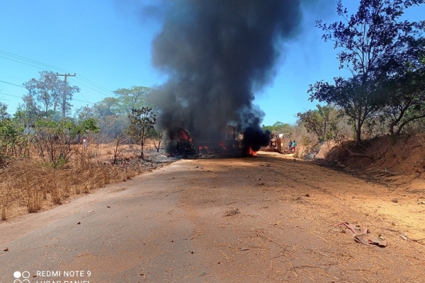 Homem fica gravemente ferido e carreta pega fogo em acidente na em Piripiri